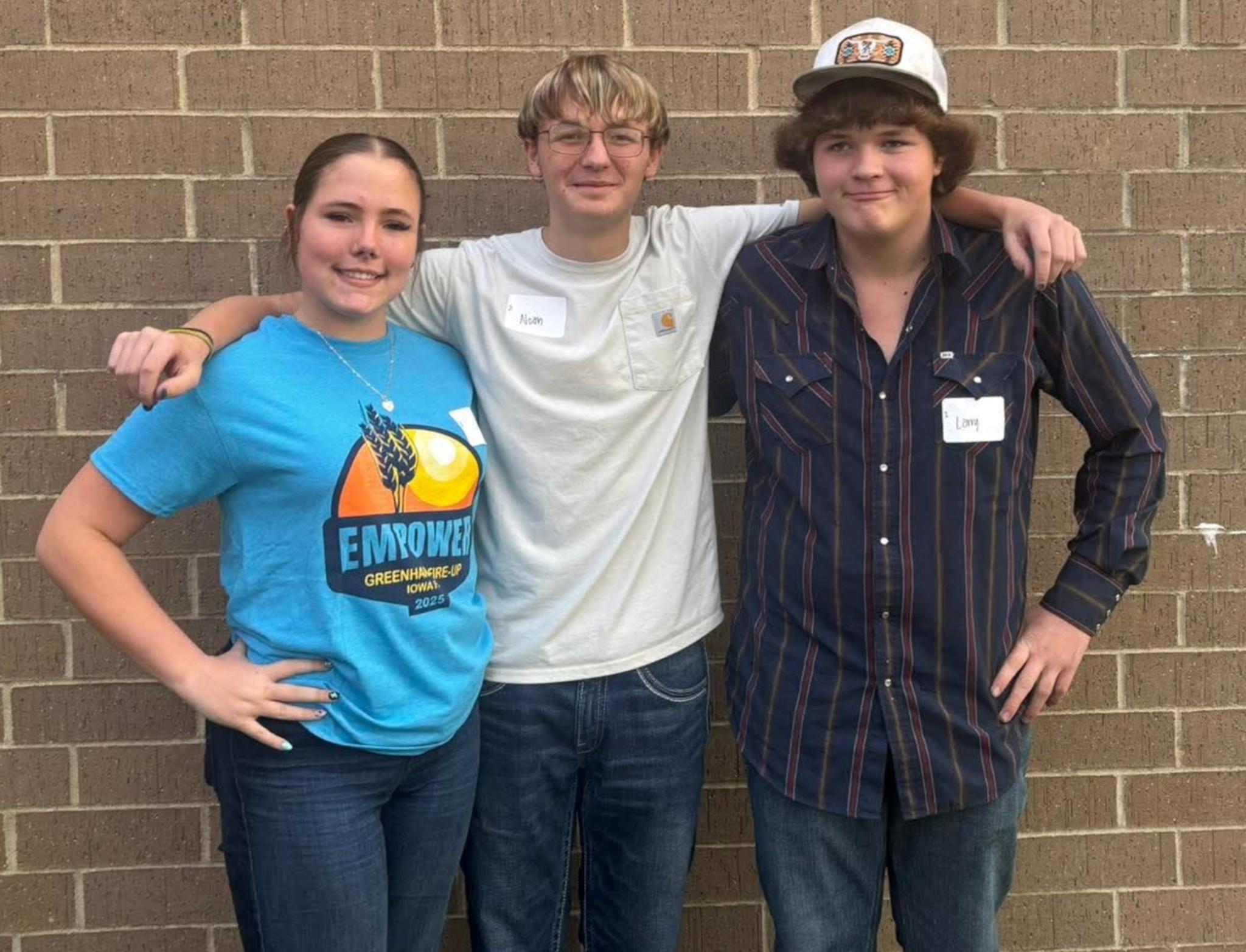 Three members of Hamburg FFA went to Atlantic to participate in Greenhand Fire-Up! It is a great opportunity for new high school members to learn what FFA has to offerand interact with district and state FFA officers. From left are Millie Riley, Noah Reafleng, and Larry Beyer. Submitted by Teresa Crecelius.